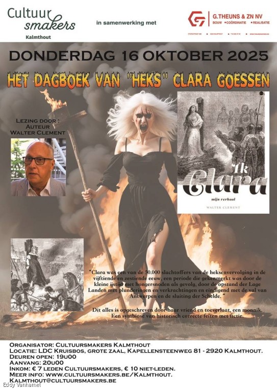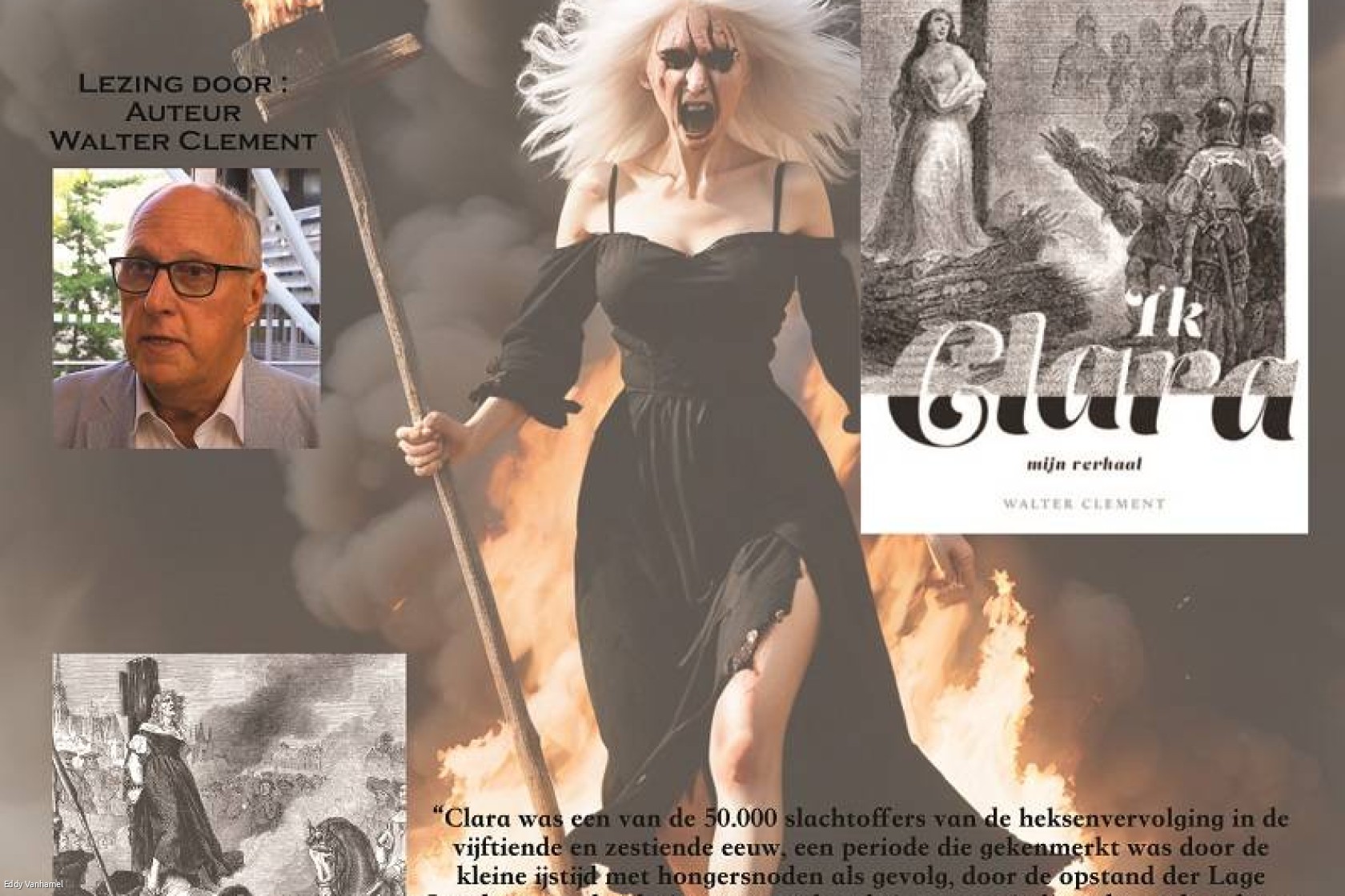 Schrijver en auteur van het boek “ Ik Clara “ is Walter Clement uit Brecht. Hij ijvert voor eerherstel van de enige verbrandde heks in Antwerpen (Clara Goessen) .